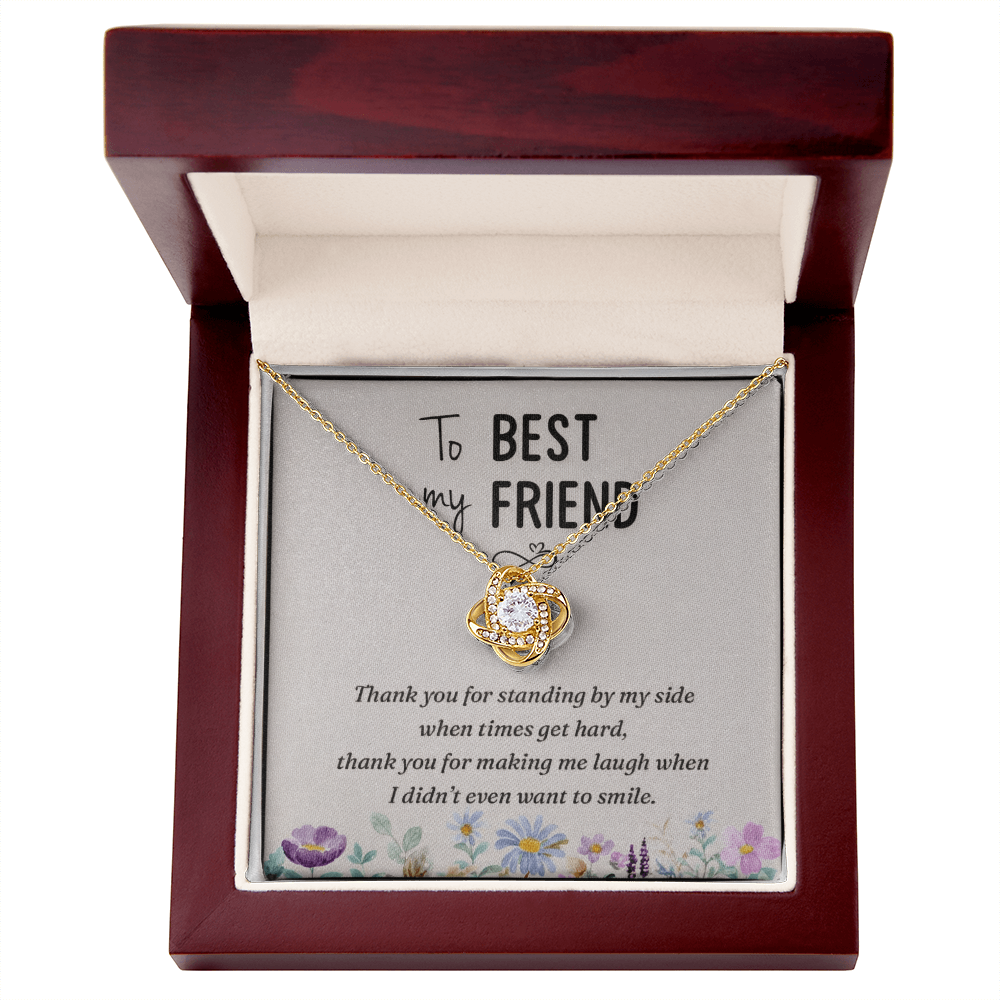 Best Friend Love Knot Necklace – “Thank You for Standing by My Side” Message Card (White Gold or 18k Gold)