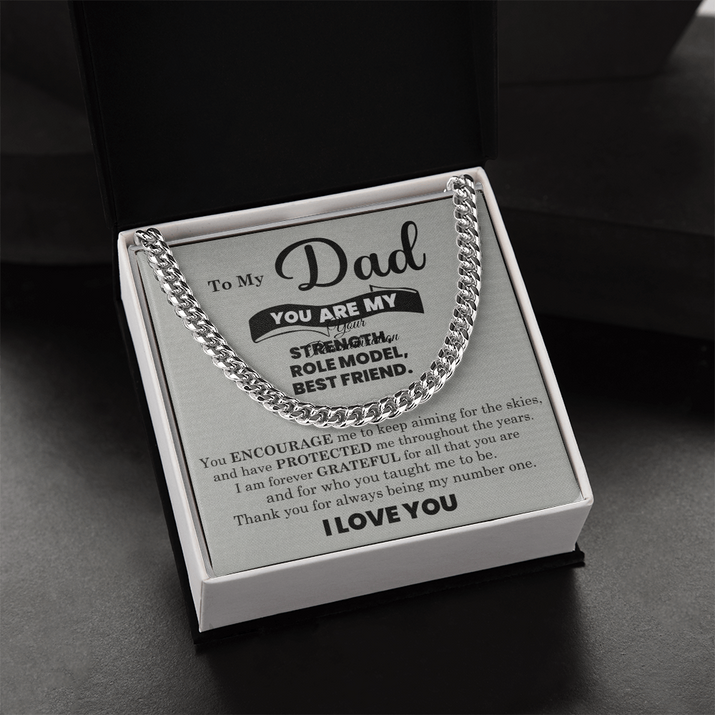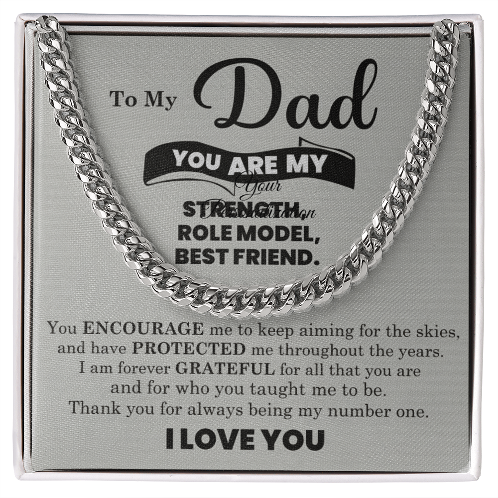 Dad Gift – Cuban Link Chain with “You Are My Strength, Role Model, Best Friend” Message Card (Stainless Steel or 14k Gold)