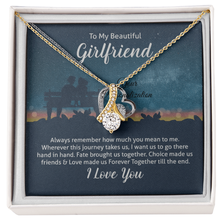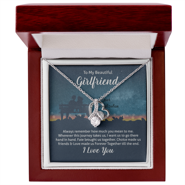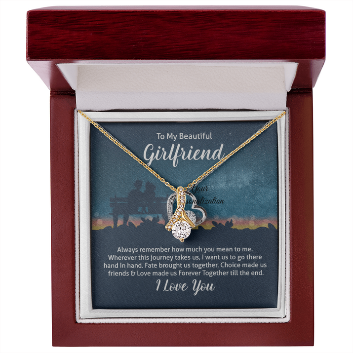 Girlfriend Gift – Alluring Beauty Ribbon Necklace with “To My Beautiful Girlfriend” Message Card (White Gold or 18k Gold)