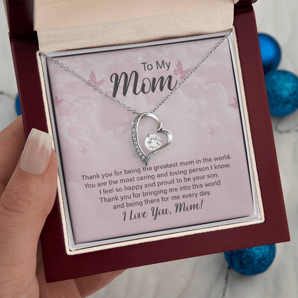 To My Mom – Forever Love Necklace – “Thank You for Everything” Message Card Gift from Son