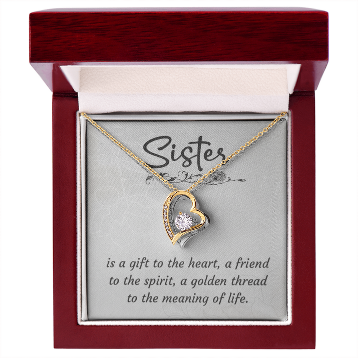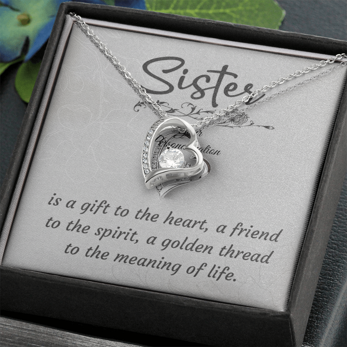 To My Sister – Forever Love Heart Necklace (14k White or 18k Yellow Gold Finish)