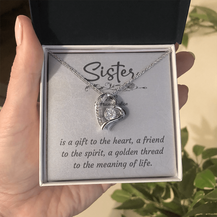 Celebrate the special bond that you share with this elegant necklace, beautifully presented with a heartfelt message card. A perfect gift that embodies love and appreciation for your sister, making any occasion memorable.